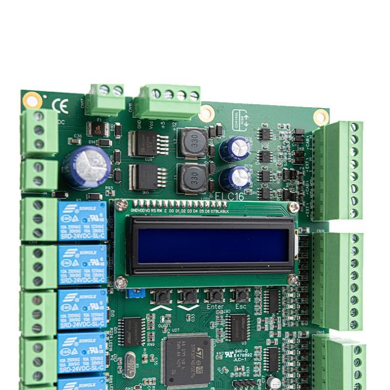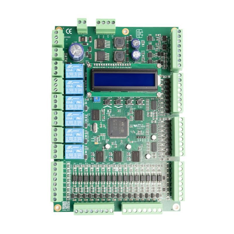 Placa de control para ascensores de hasta 8 paradas, diseñada por ControlRise. La ELC16 es una solución compacta y eficiente, ideal para proyectos de menor escala que requieren fiabilidad, facilidad de programación en campo y compatibilidad con sistemas modernos de señalización y comunicación.